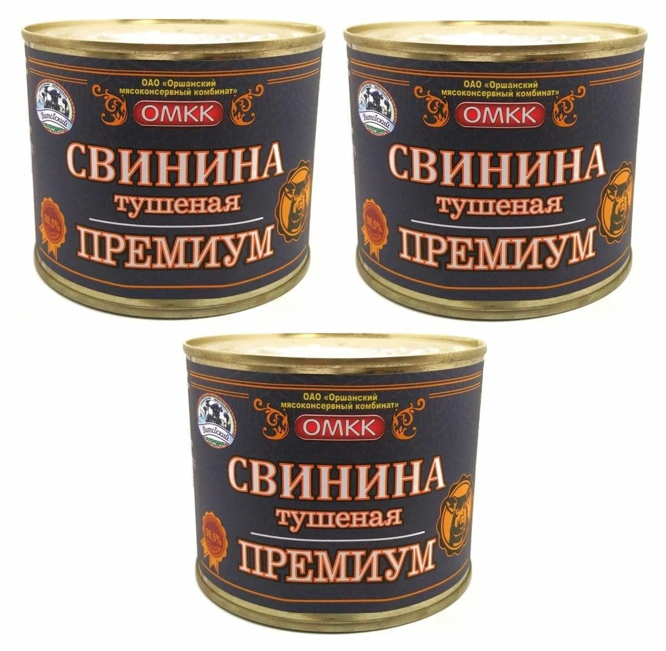 Свинина тушеная Премиум 98,5%, омкк, Беларусь, 525 г х 3шт интересное: