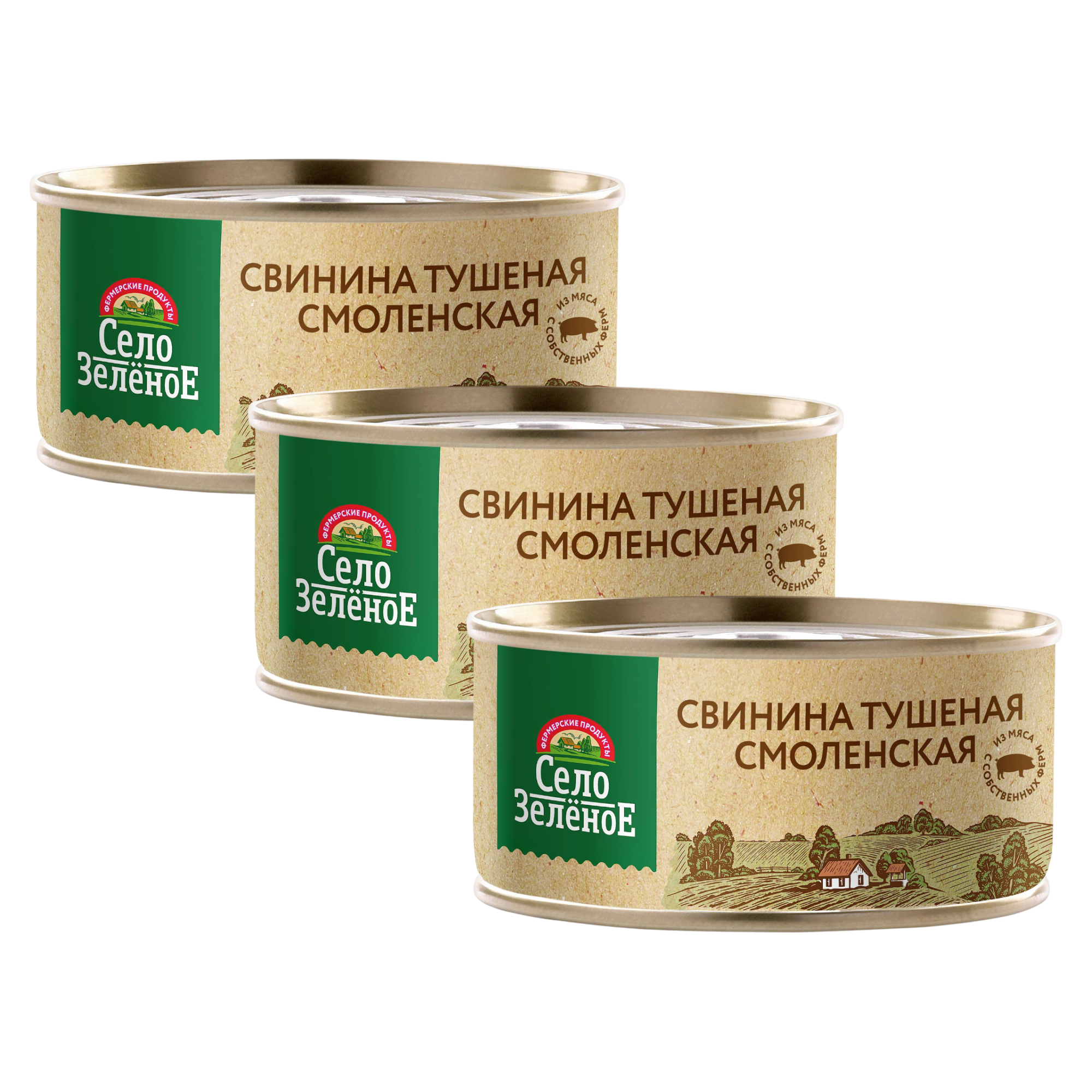 Купить Консервы мясные Село Зеленое Свинина тушеная Смоленская, 3 шт по 325 г