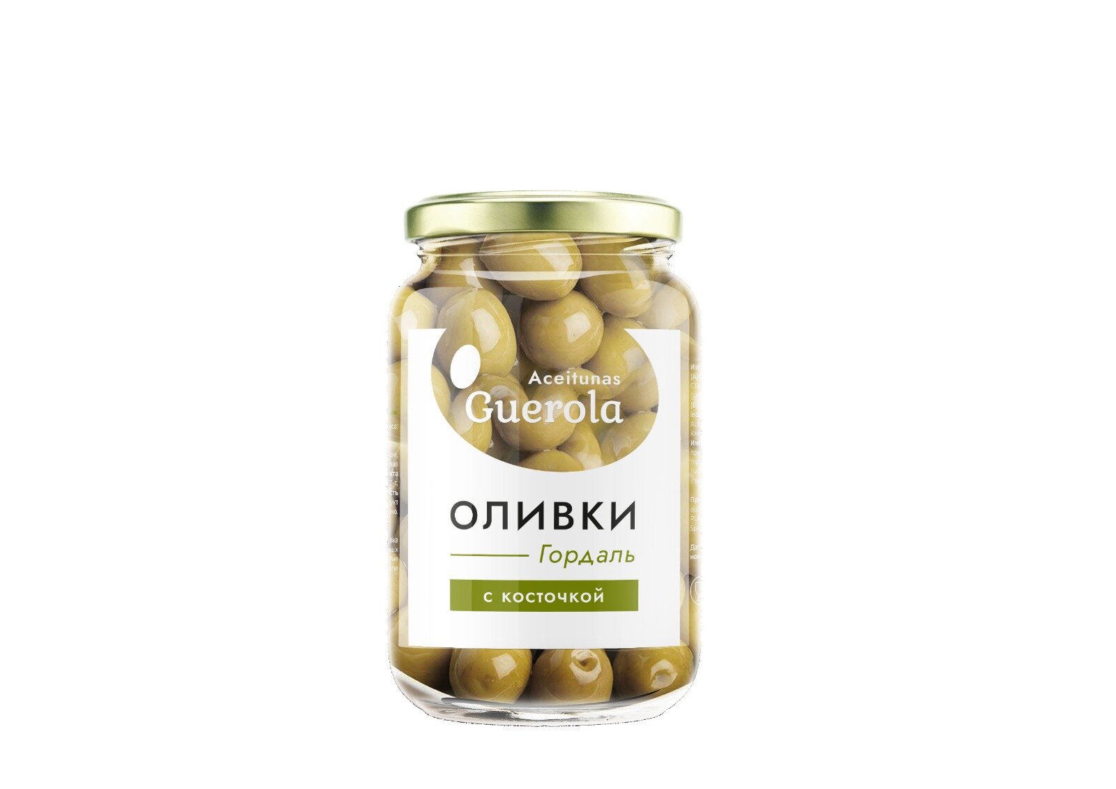 Купить Оливки "Aceitunas Guerola" зеленые с косточкой Гордаль 340г/370мл