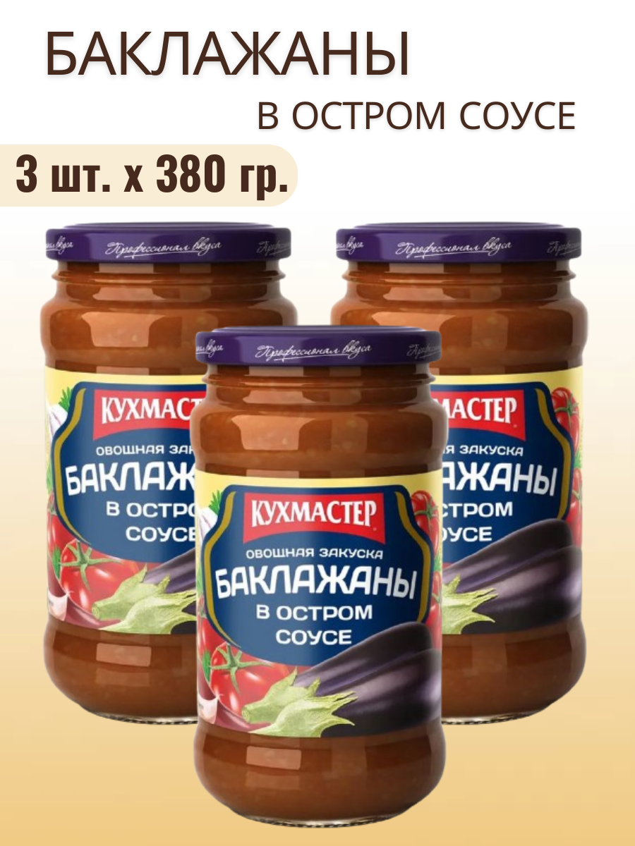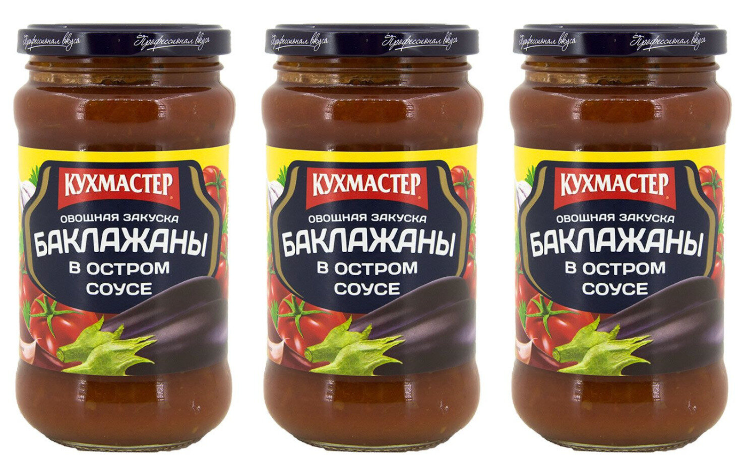 Купить Кухмастер Закуска Баклажаны в остром соусе, 380 г, 3 шт