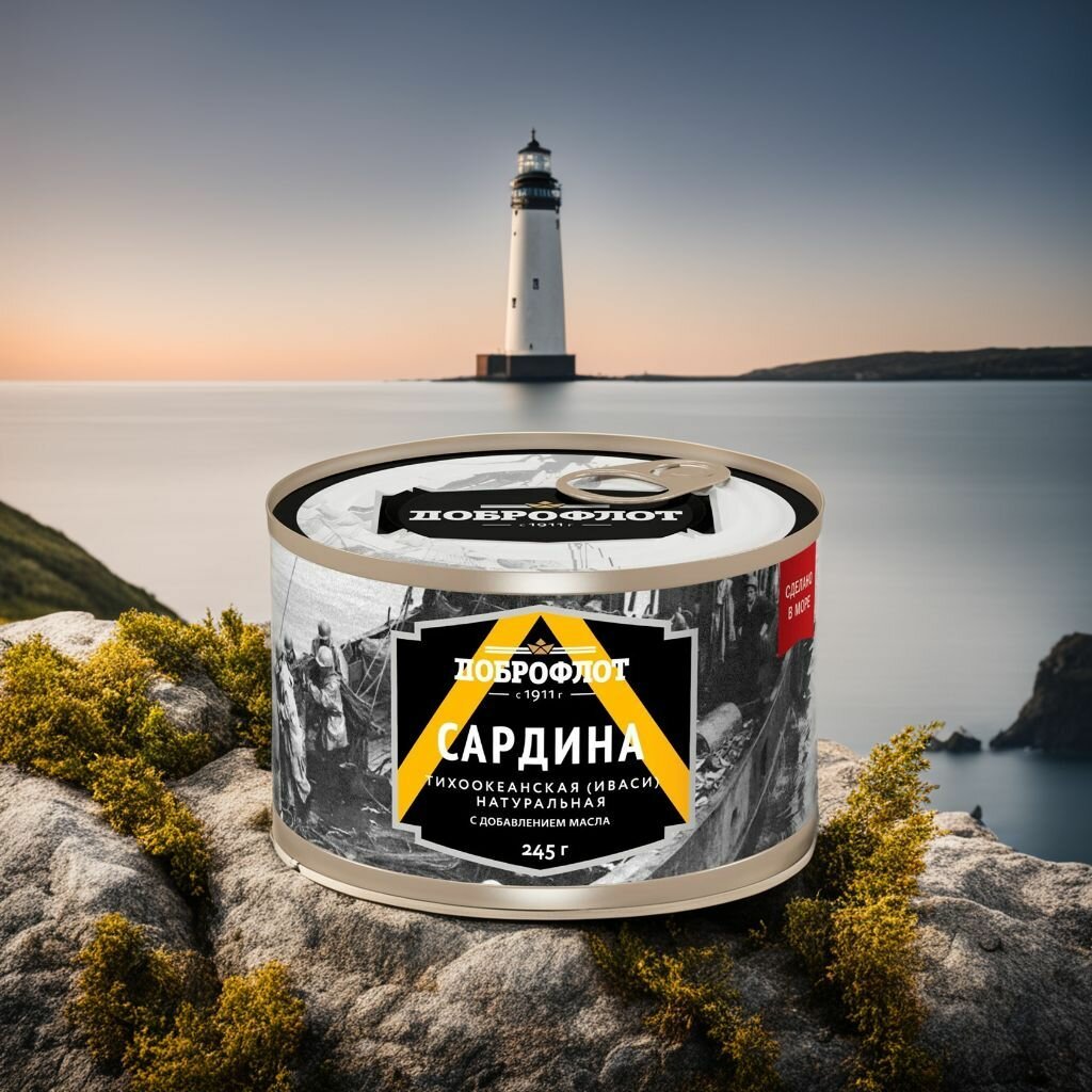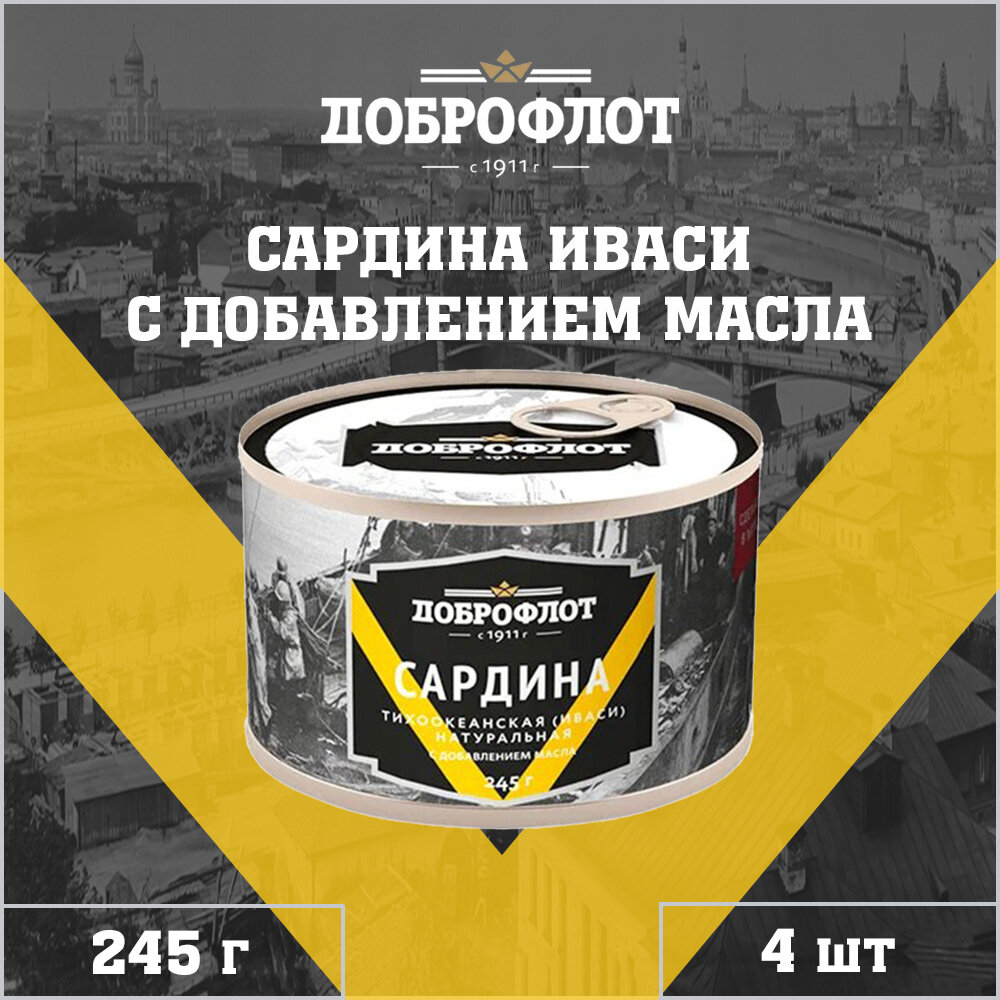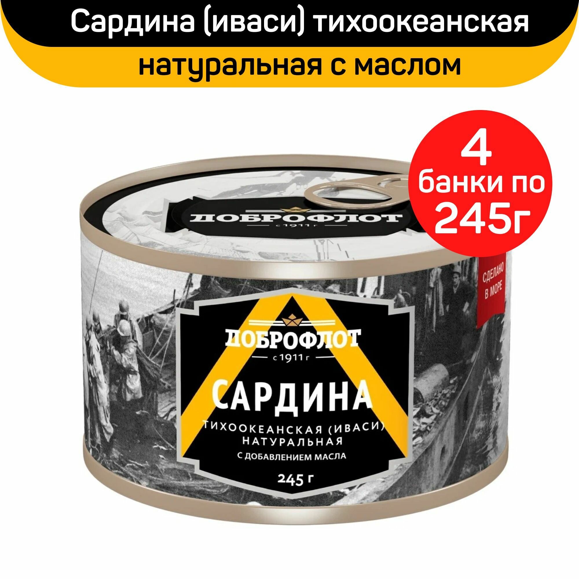 Консервы рыбные "Доброфлот" Сардина тихоокеанская Иваси, натуральная с добавлением масла, 4 шт по 245 г