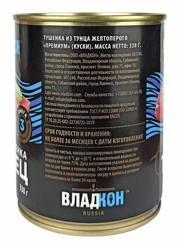 Тушенка из тунца желтоперого "Премиум" №9 (куски) Владкон 338 гр ключ,4 банки интересное: