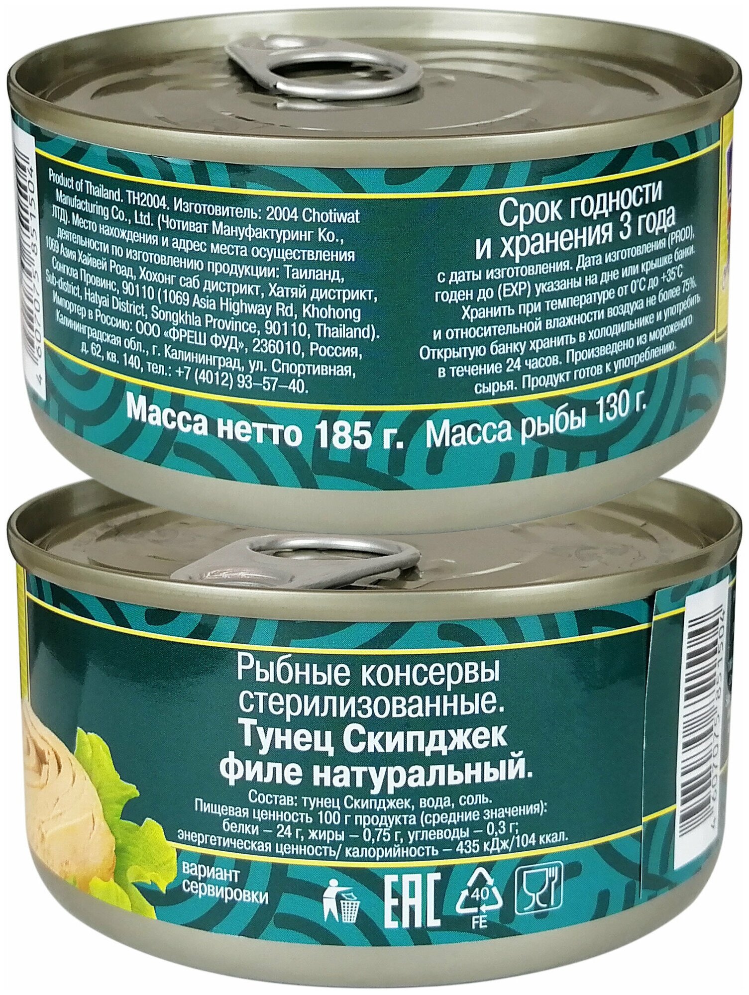 | Состав | Тунец Скипджек, вода, соль |