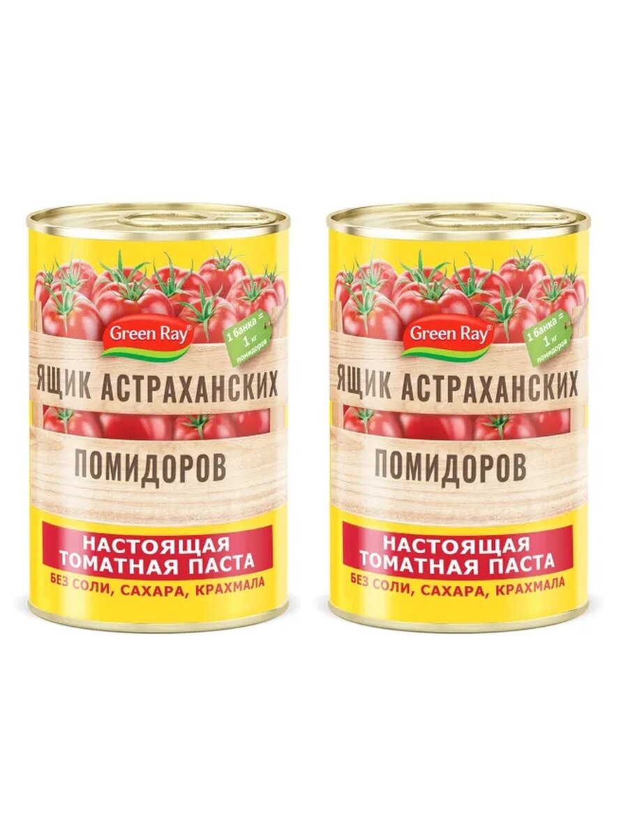 Томатная паста Green Ray, Астраханская, без соли, сахара, крахмала, 2 банки по 380 гр. интересное: