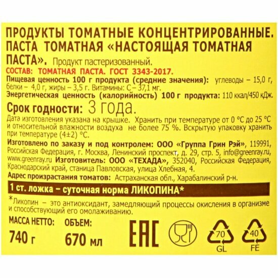 Томатная паста Green Ray "Ящик Астраханских Помидоров" 740 мл интересное: