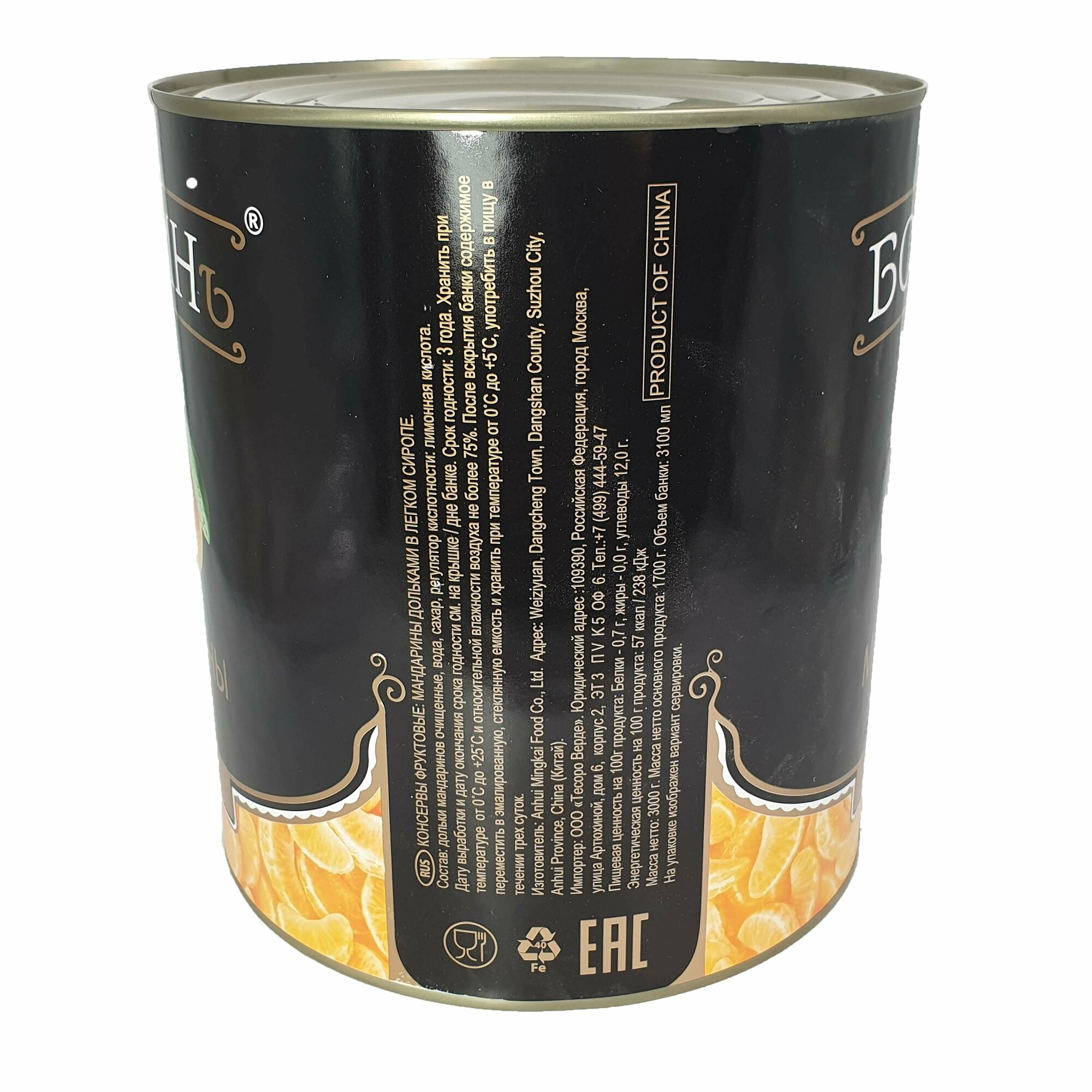 Мандарины в сиропе "Бояринъ" в большой банке 3100мл интересное: