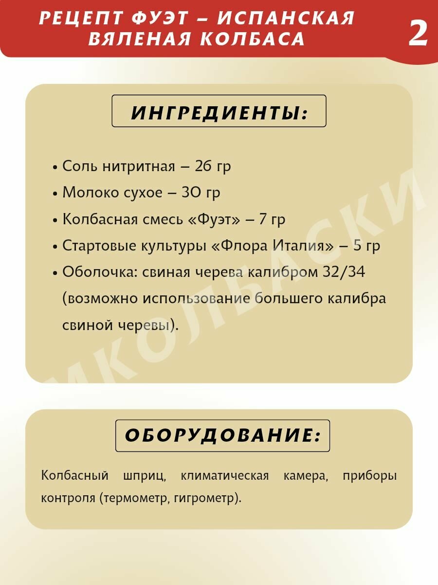 | Дополнительная информация | Виды колбас: Сыровяленые колбасы, Украинская жареная, Краковская, кровяная, сардельки, купаты, колбаски-гриль |