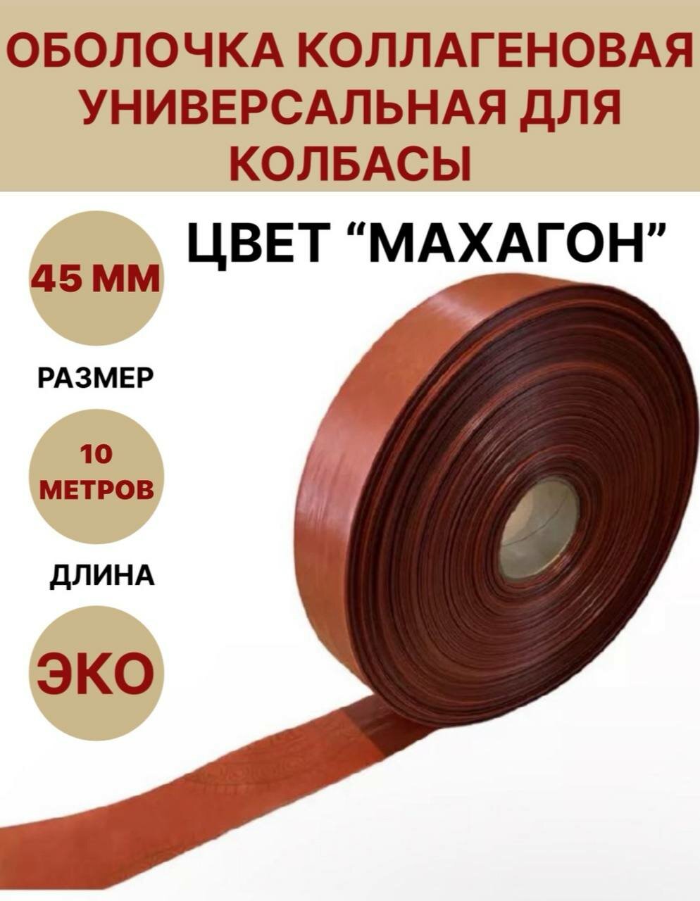 Купить Коллагеновая оболочка цвет "махагон" 45 мм - 10 м