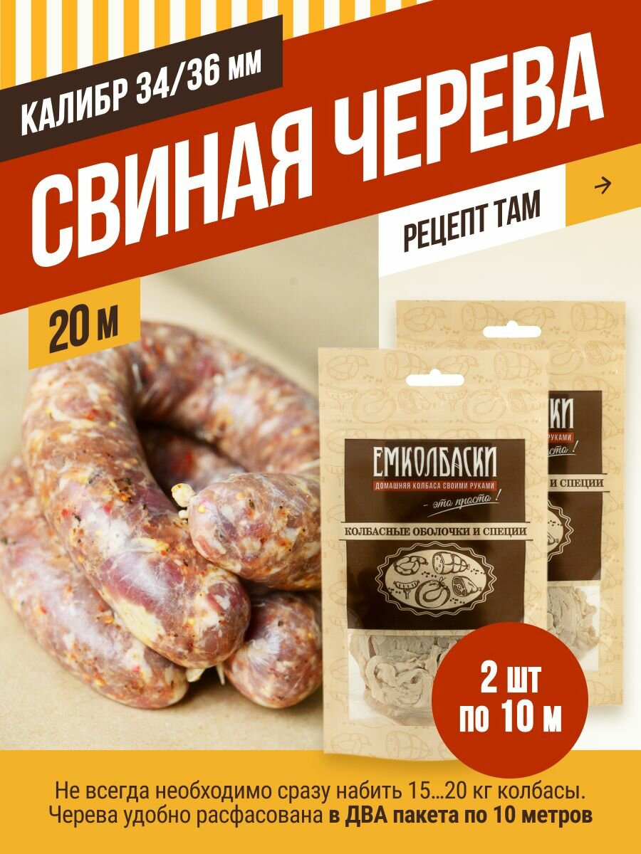 Свиная черева калибр 34/36 мм, длина 20 м, натуральная оболочка. Емколбаски интересное: