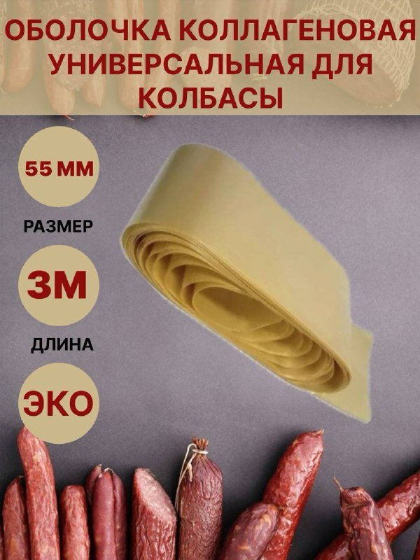 Коллагеновая оболочка для колбасы универсальная 55мм - 3 метра интересное: