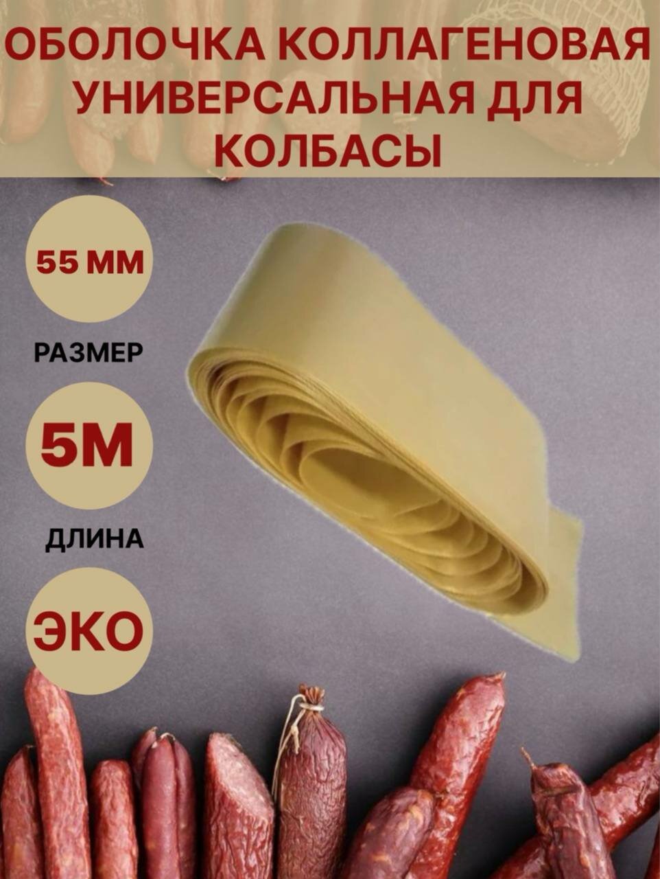 Коллагеновая оболочка для колбасы универсальная 55мм - 5 метров интересное: