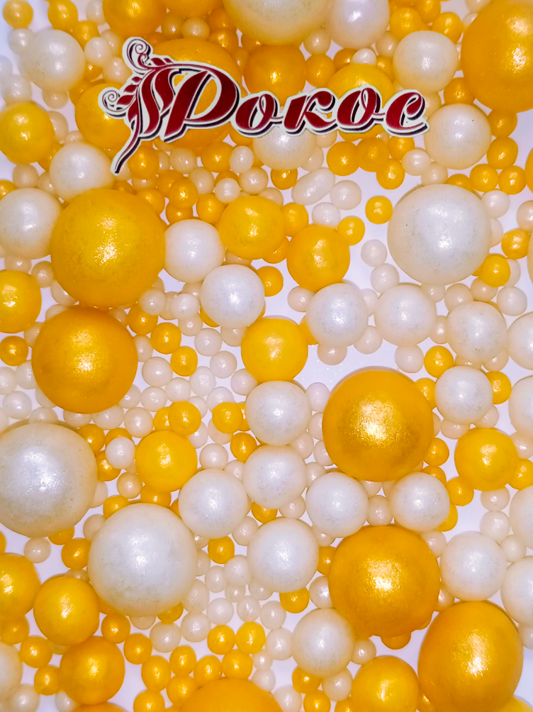 Посыпка кондитерская шарики, драже рисовое в глазури, украшение для торта, выпечки, куличей 40 г / желтый