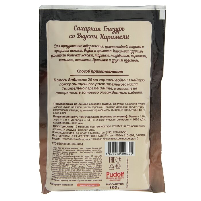 Сахарная глазурь С. Пудовъ Со вкусом карамели 100 г интересное: