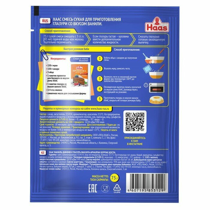Haas Глазурь со вкусом вишни, сухая смесь для приготовления, 75 г