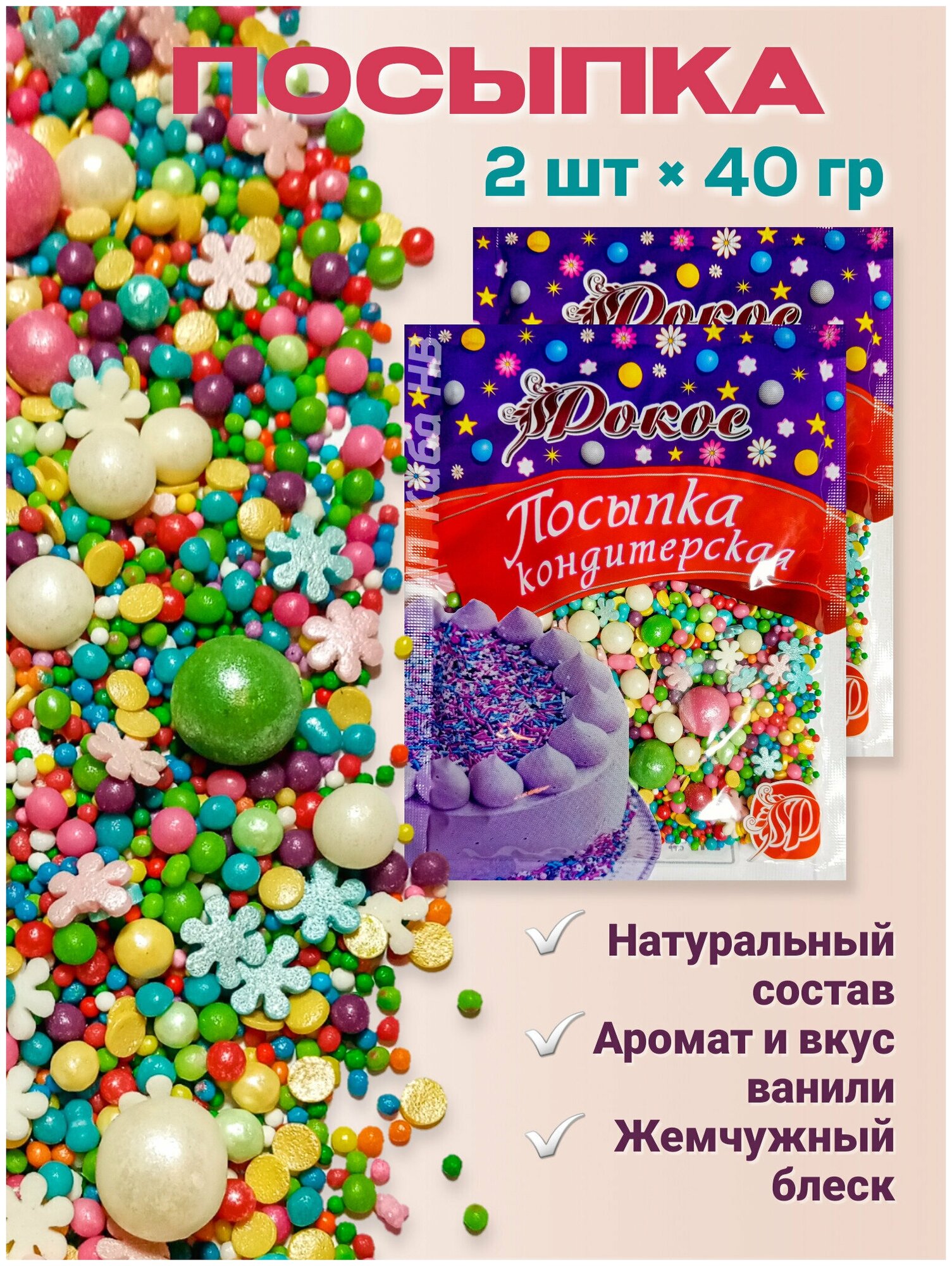 Посыпка, драже рисовое в глазури, украшение для торта, куличей, выпечки 2 пакета по 40 г.