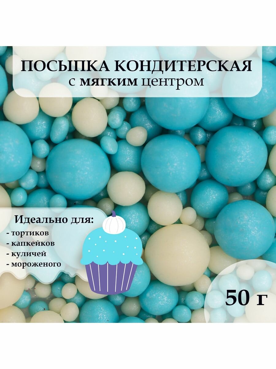 Посыпка кондитерская "Жемчуг", голубая, 50 г 1шт.