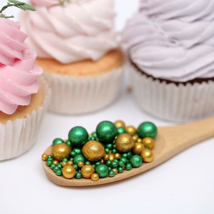 Посыпка кондитерская с глиттером «Блеск»: зеленый, золото, 50 г интересное: