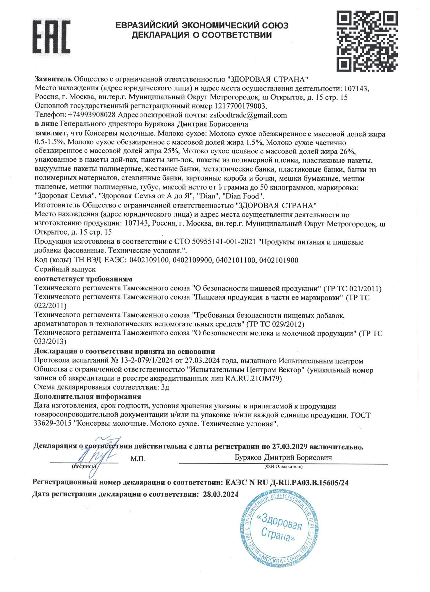 | Бренд | Здоровая Семья |