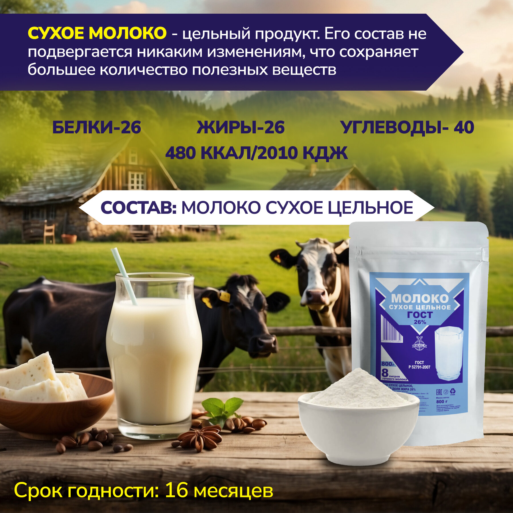 Сухое молоко цельное ГОСТ, 800 гр. интересное: