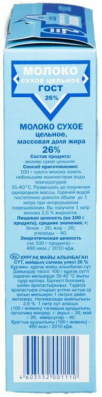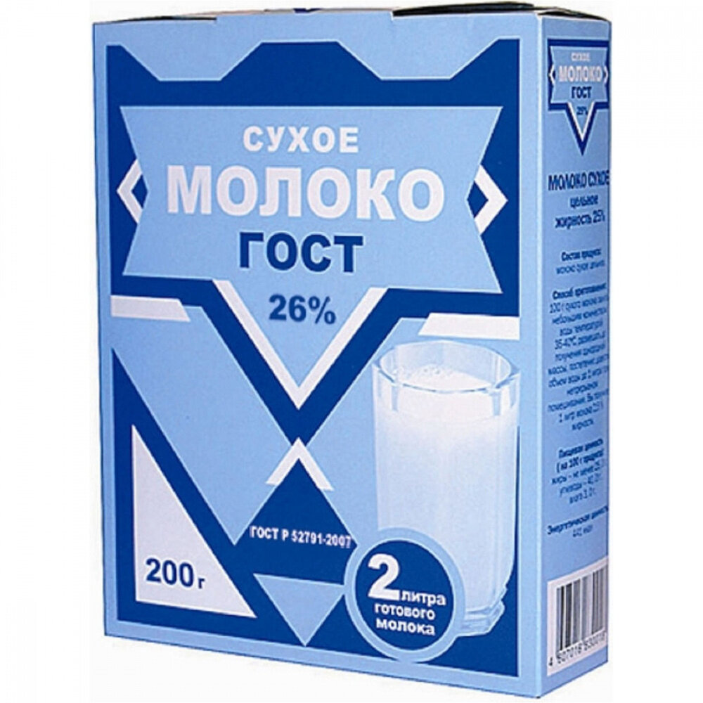Сухое молоко цельное ГОСТ, короб 200 гр. интересное: