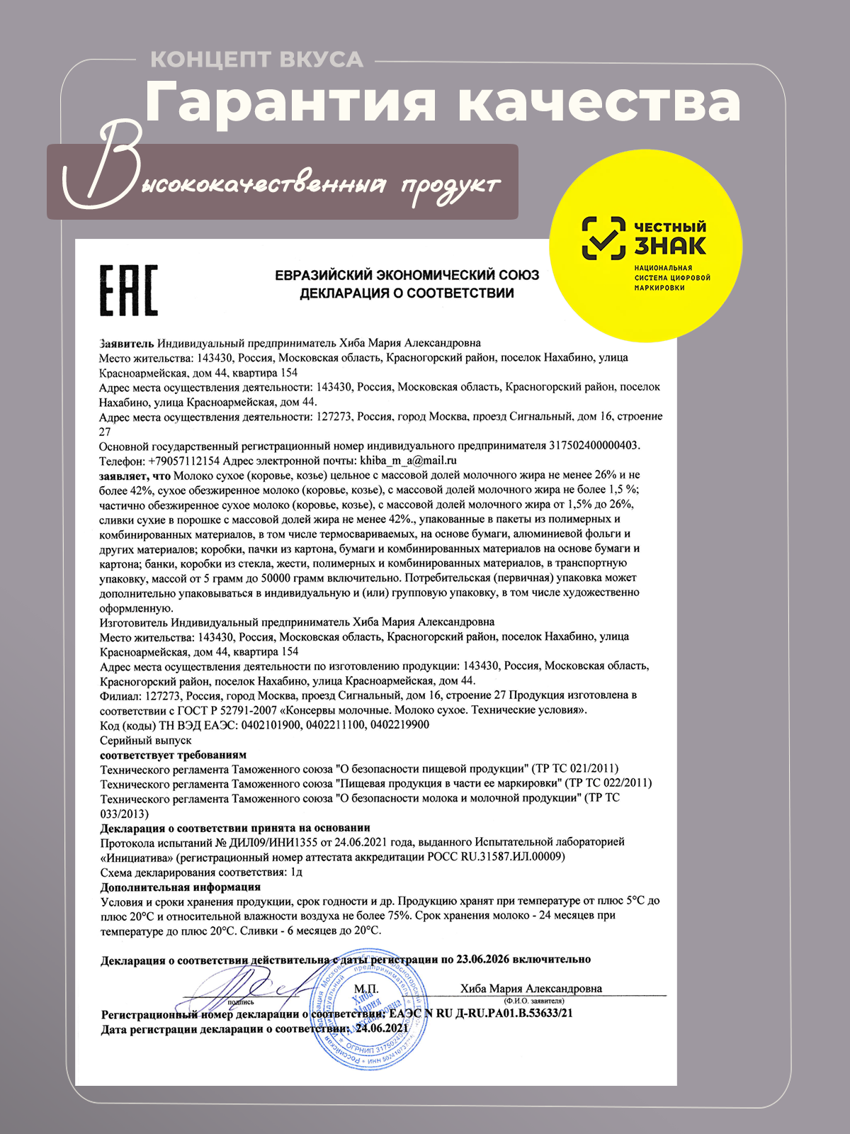 | Не содержит | ГМО / ароматизаторы / глутамат натрия / глютен / заменитель молочного жира / искусственные красители / консерванты / крахмал / пальмовое масло / сахар |