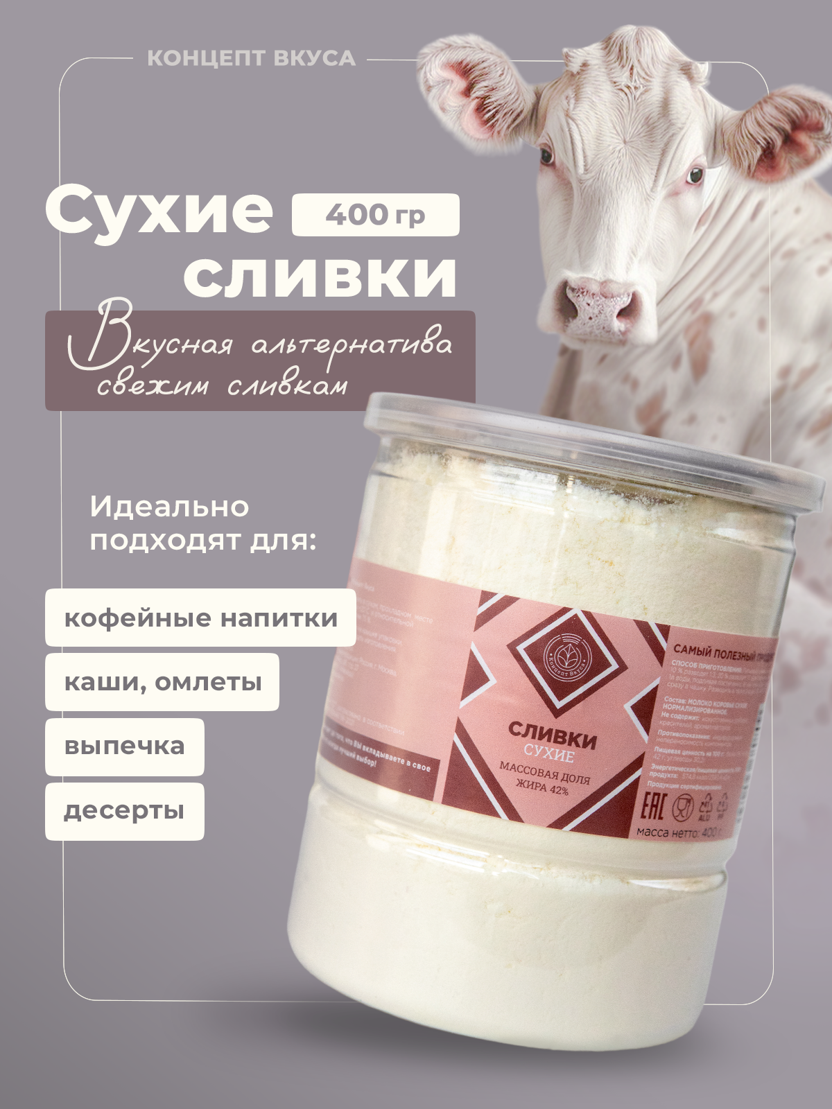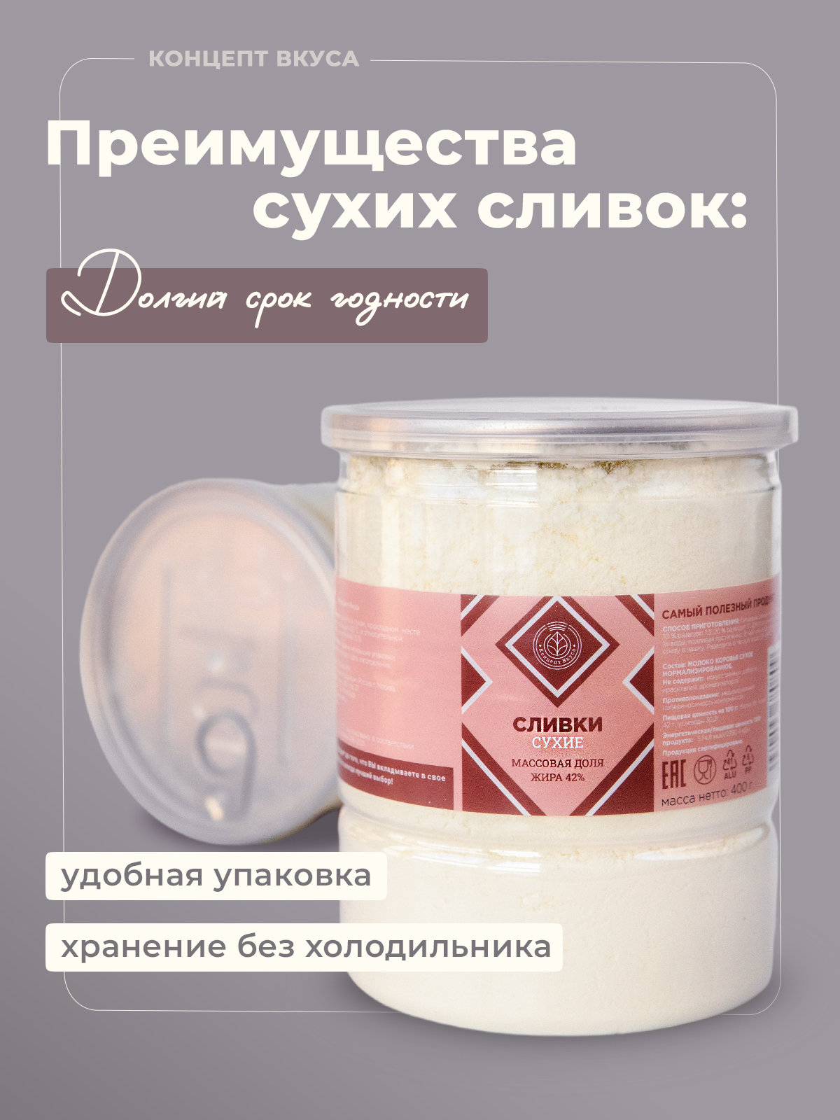 Сливки сухие натуральные 42% ГОСТ 400г интересное: