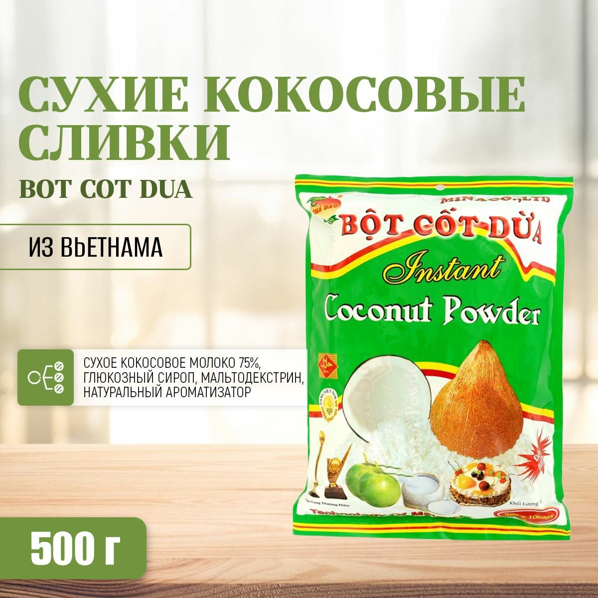 Сухие кокосовые сливки Bot Cot Dua (10х50), 500 г интересное: