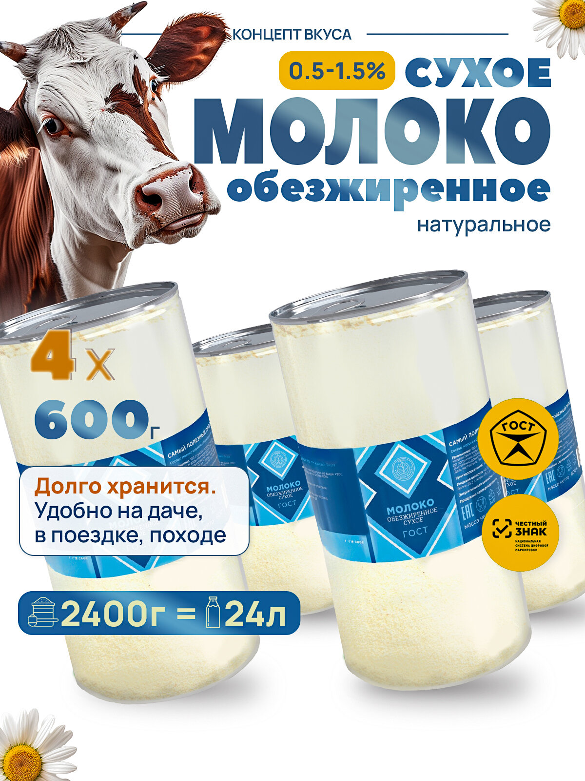 Молоко сухое обезжиренное 0,5-1,5% натуральное Белорусское молоко ГОСТ 4х600 г интересное: