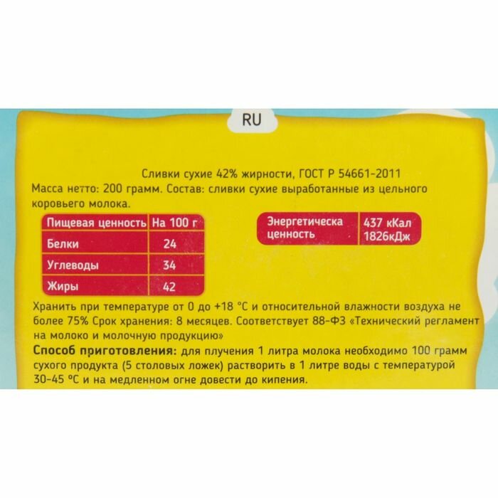 | Тип | сухие сливки |