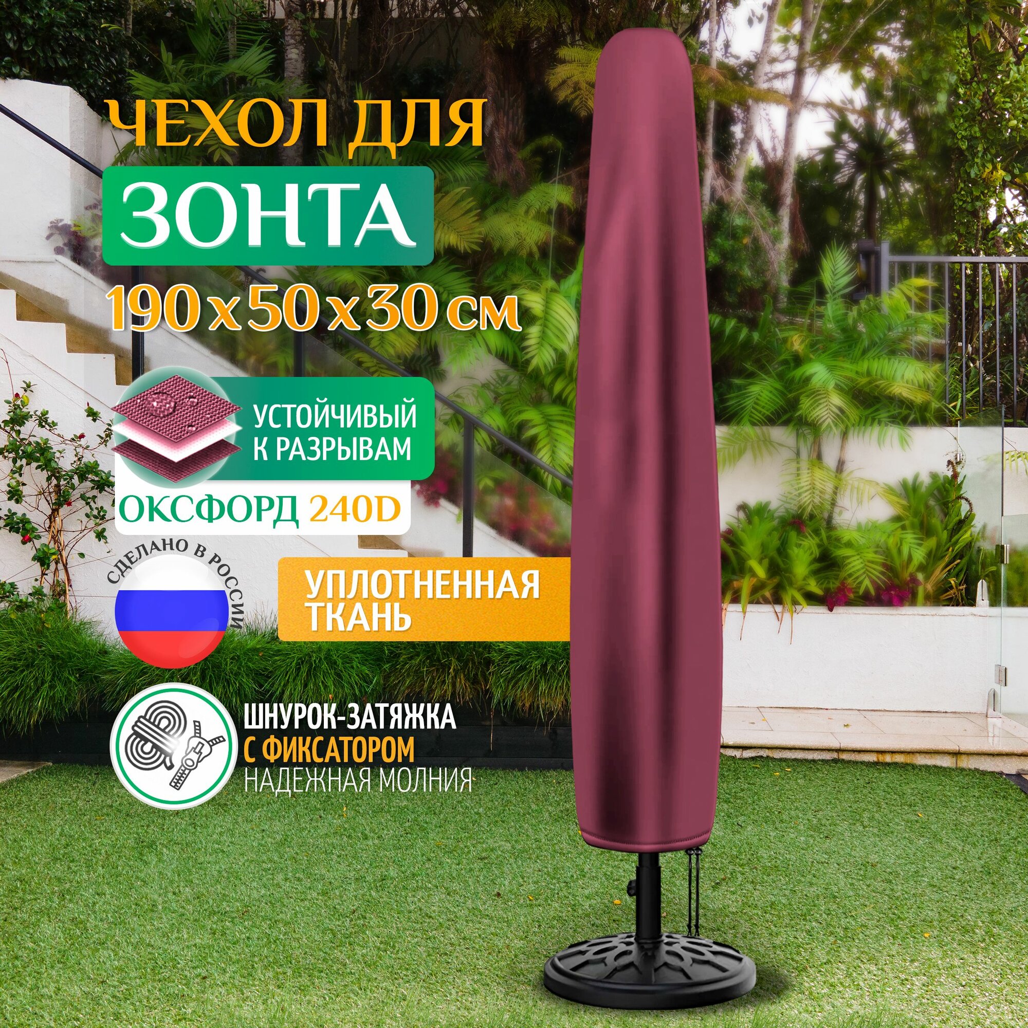 Чехол для зонта 190х50х30 см, бордовый интересное:
