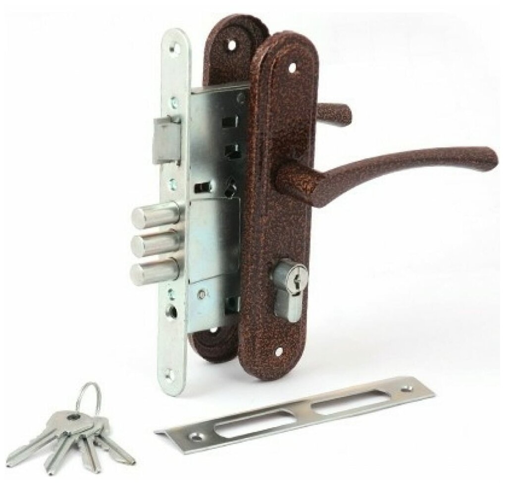 Замок врезной цилиндровый с защёлкой в комплекте с ручкой Омега (замки) омега ЗВ4.2-01 (медь), 3 кл. интересное: