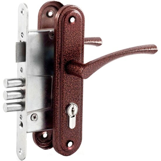 Замок врезной цилиндровый с защёлкой в комплекте с ручкой Омега ЗВ4.2-01 (медь), 3 кл.