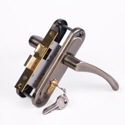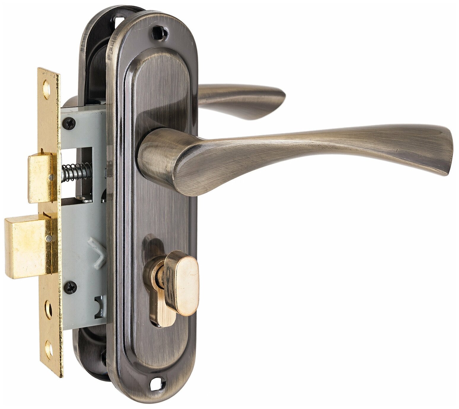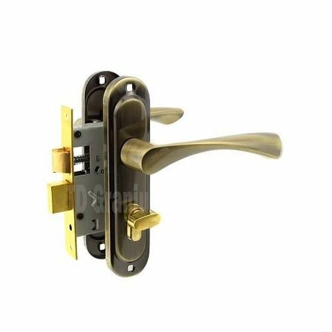 Врезной замок для деревянных дверей с ручками (левых и правых) Стандарт 103/50B вертушка AC старая медь