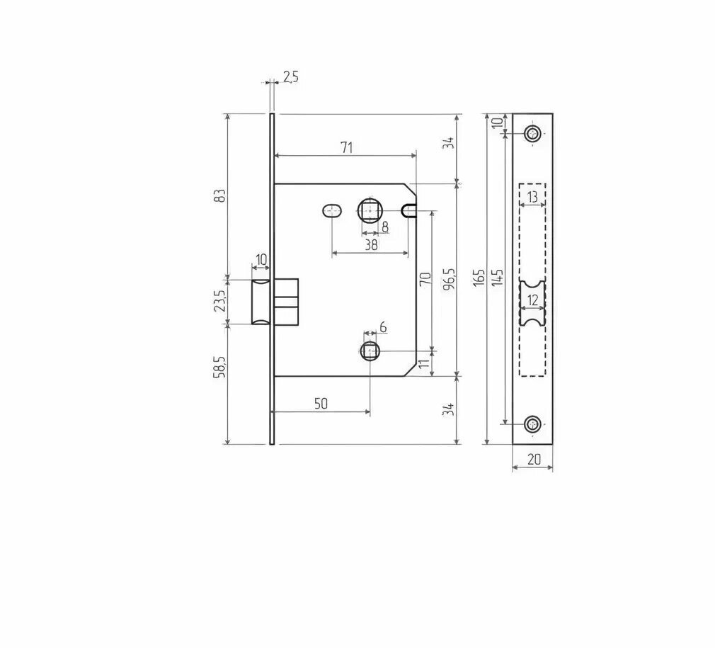 Замок врезной магнитный 25М-85 мм, чёрный Нора-М 18525