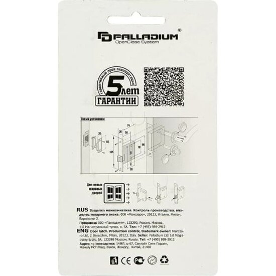 Дверная защелка врезная Palladium 470 PC 219x110x22 мм металл