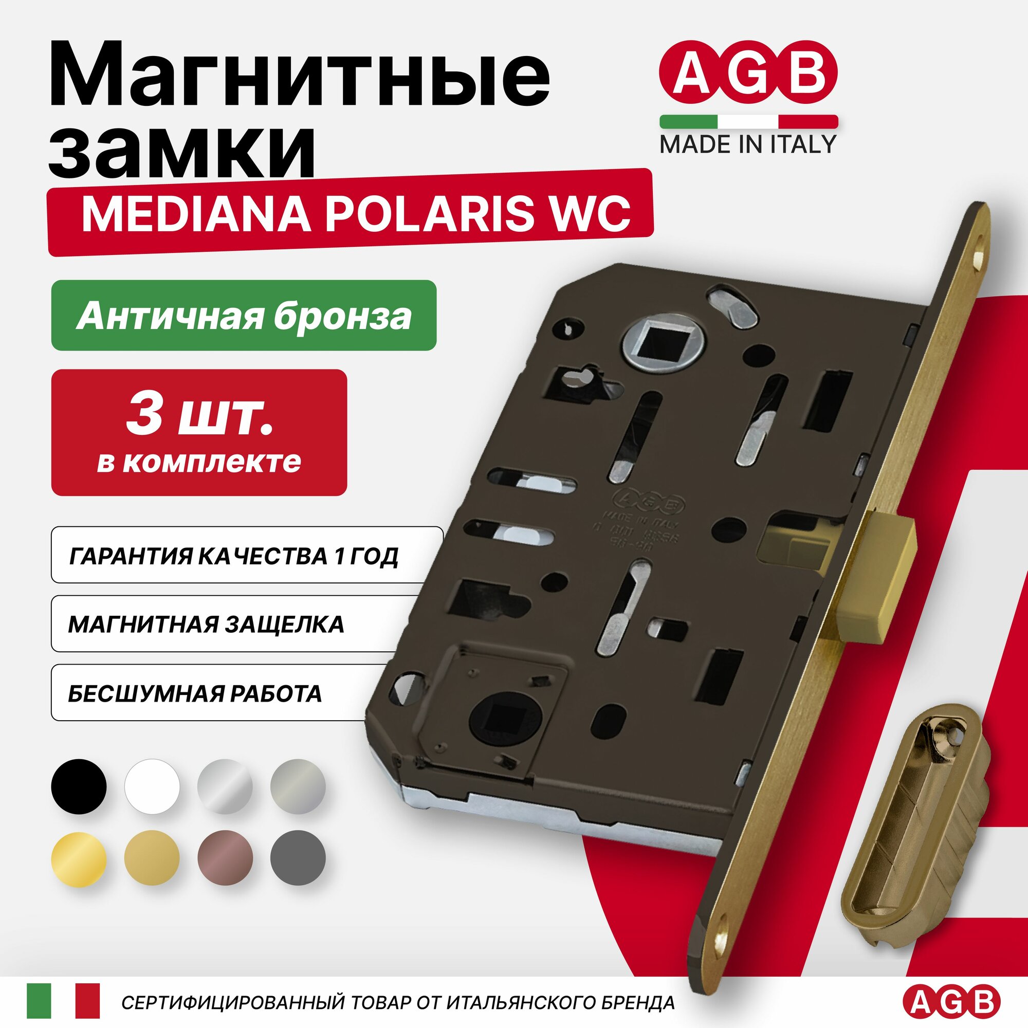 Замок AGB Mediana Polaris WC + ответная часть, латунь