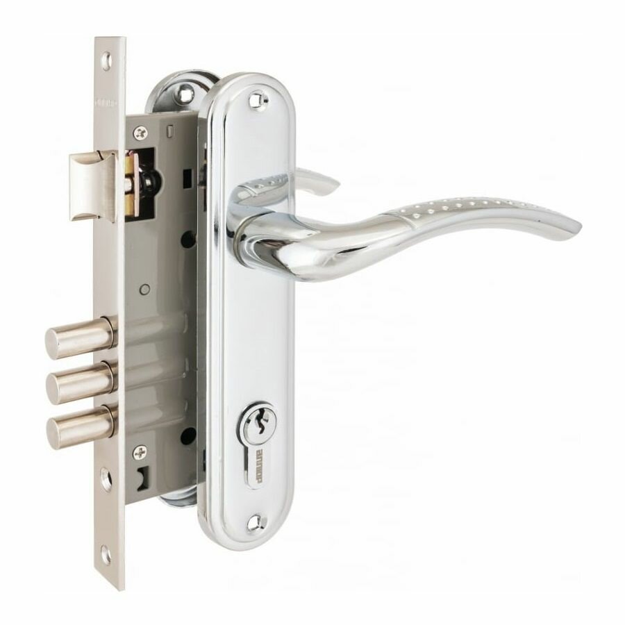 Замок врезной для входной двери аллюр ЗВ 132/3 СР хром 4кл. с ручками, цилиндром / для калитки