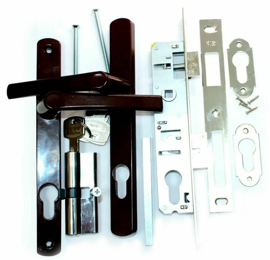 Замок дверной с Ручками для Калиток, Металлических, Алюминиевых и ПВХ-дверей. 85мм Коричневый 8017 ключ/вертушка