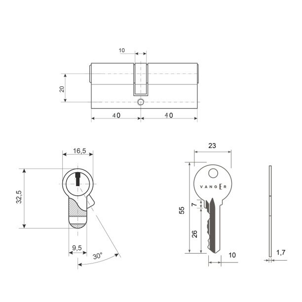 Цилиндровый замок APECS 72-K-CR