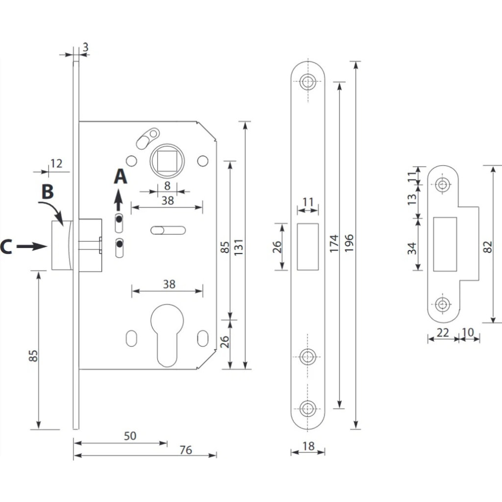 Замок врезной Apecs, 5300-P-CR, 18128, без ручки, хром
