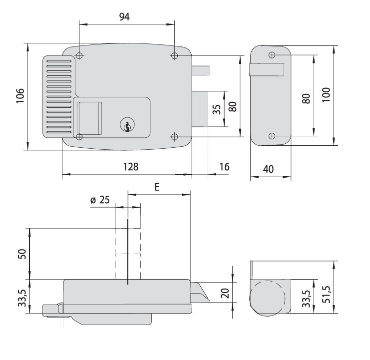 Замок электромеханический накладной Cisa 11.630.60.4 (сторона открывания:дверь наружу, петли справа)