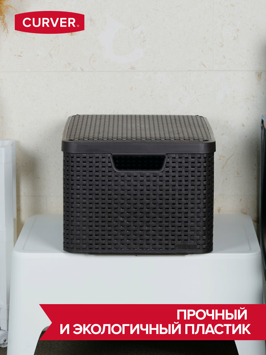 Корзина для хранения с крышкой, RATTAN STYLE BOX L 30л, пластик, тёмно-коричневая