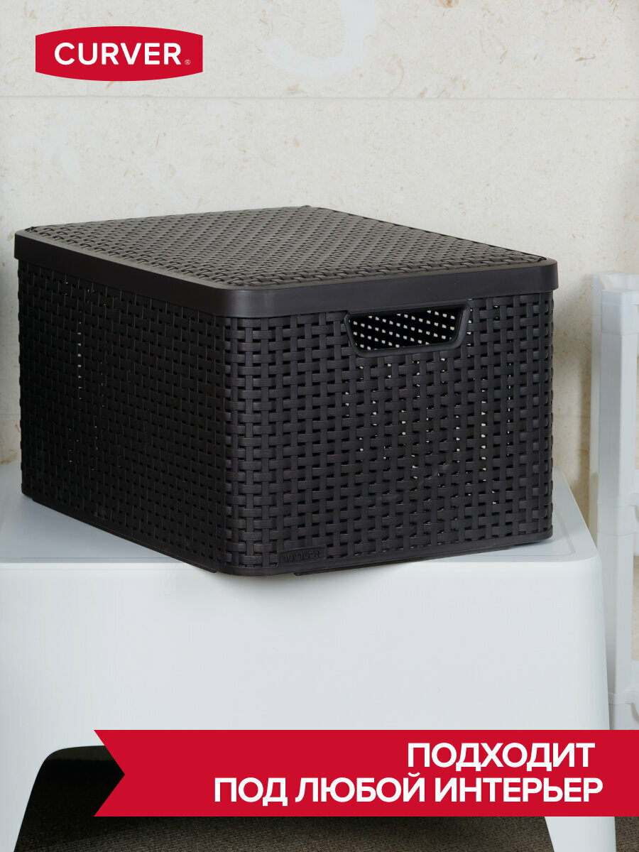 CURVER Корзина RATTAN STYLE BOX L 30л+крышка тёмно-коричневая 03619-210
