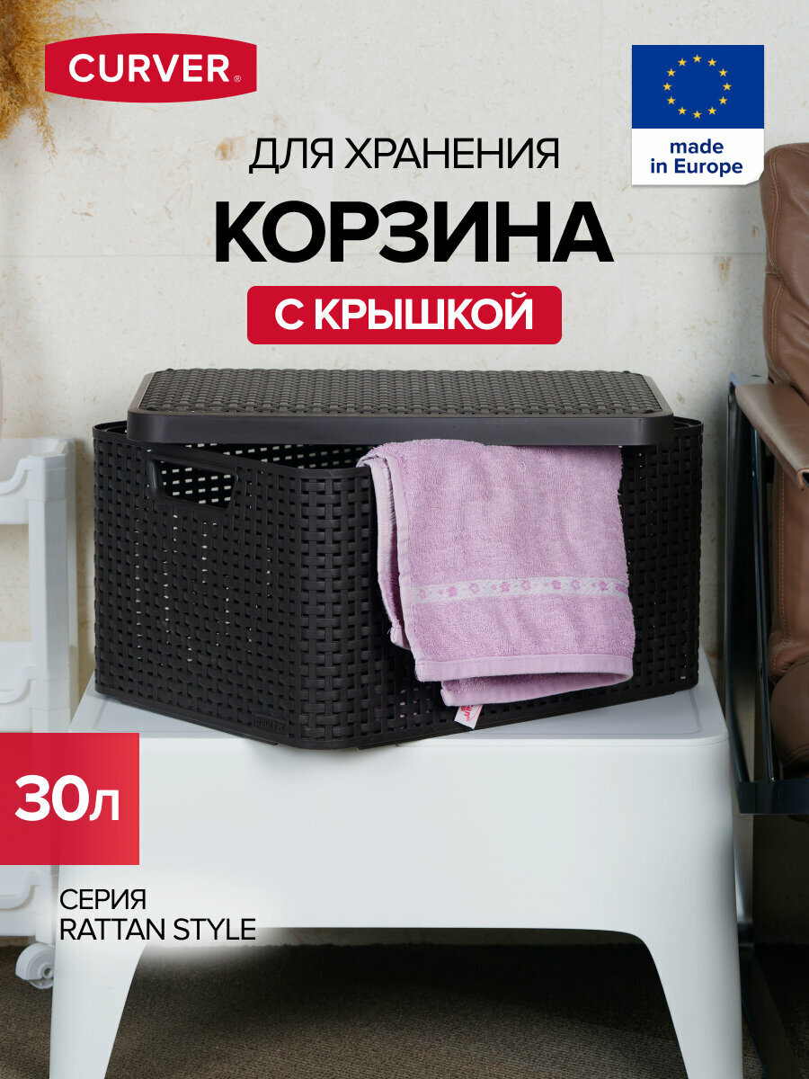 Купить Корзина RATTAN STYLE BOX L 30л+крышка тёмно-коричневая
