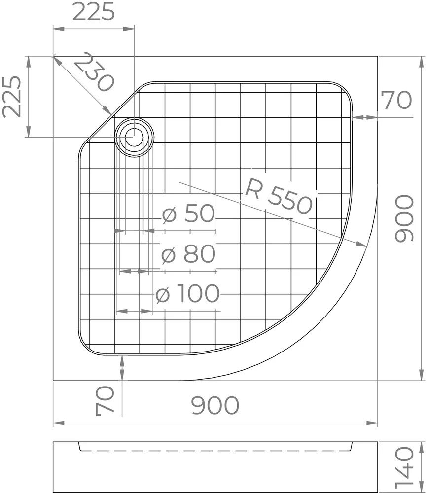 River Поддон для душа WEMOR 70/14 S квадратный 700*700*140 мм, с сифоном
