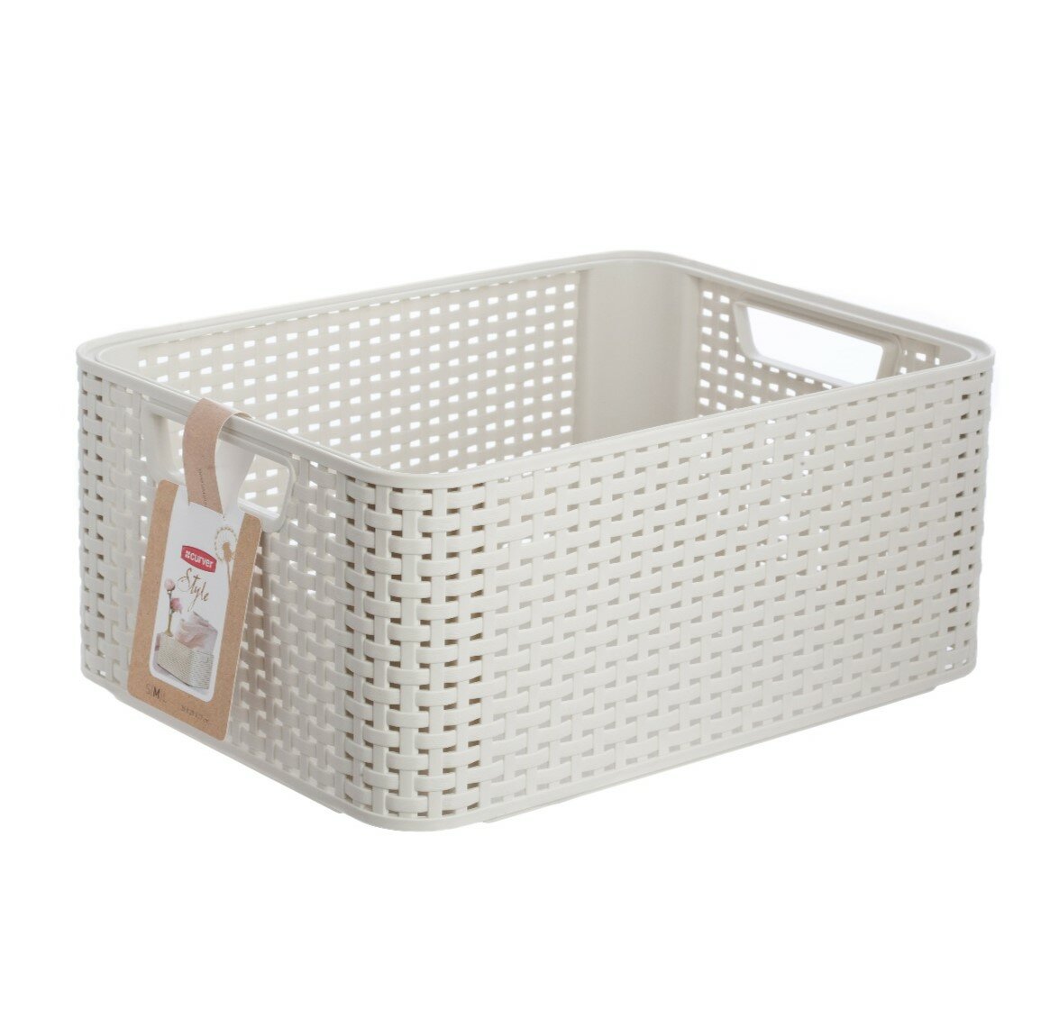Коробка/корзина для хранения с крышкой, 18 л, RATTAN STYLE BOX M, цвет кремовый