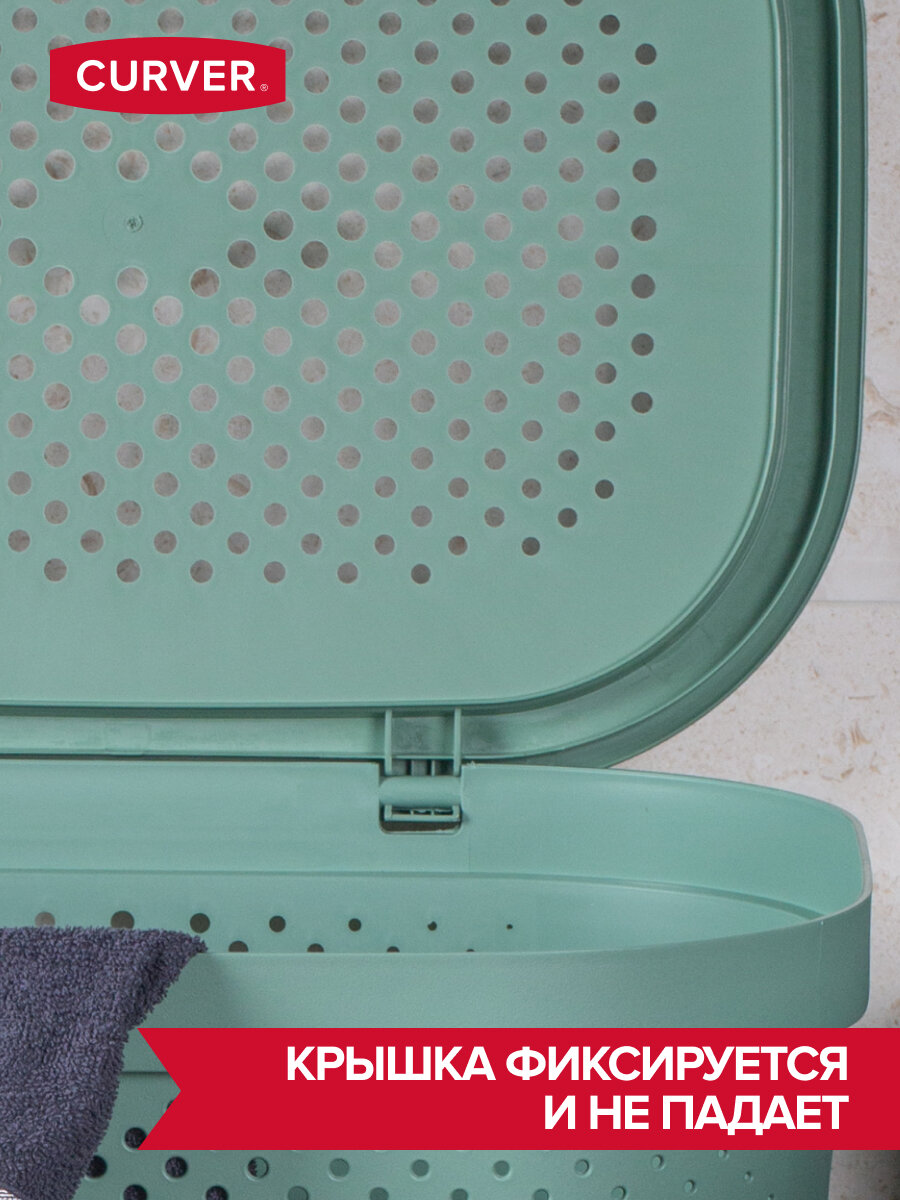 Корзина для белья с откидной крышкой 60 л, INFINITY CURVER, цвет сланцово-зеленый