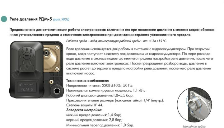 ДЖИЛЕКС Реле давления Джилекс для автоматизации РДМ-5 интересное: