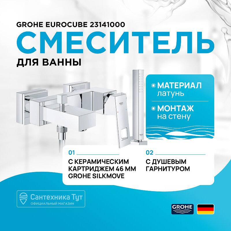 Смеситель для ванны GROHE Eurocube с душевым гарнитуром, хром (23141000)