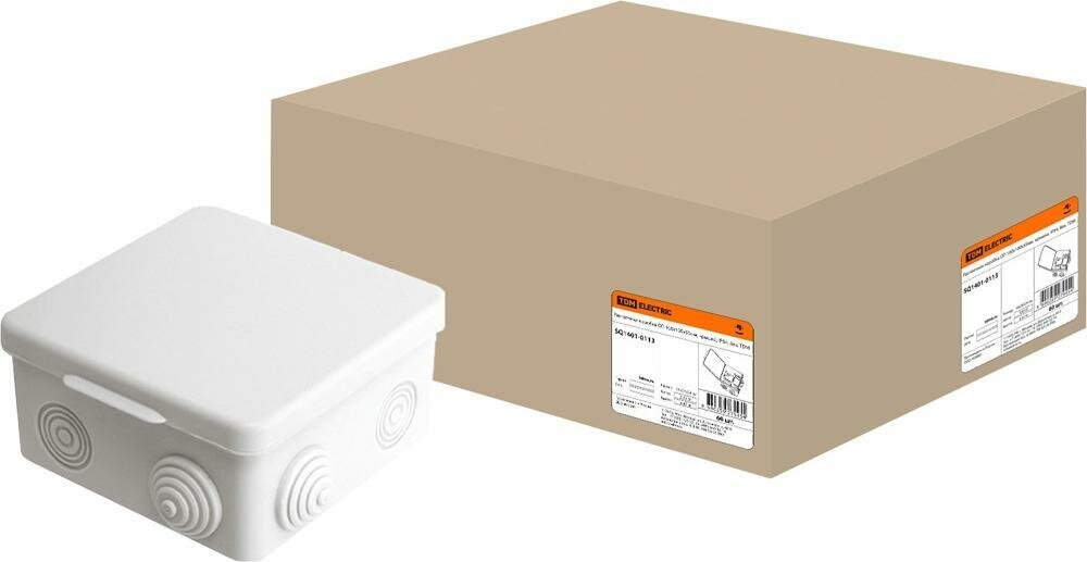 Коробка распределительная TDM Electric 100x100x55 квадратная 8 входов с герммовводами для открытого монтажа IP54 белая (комплект из 10 шт.)